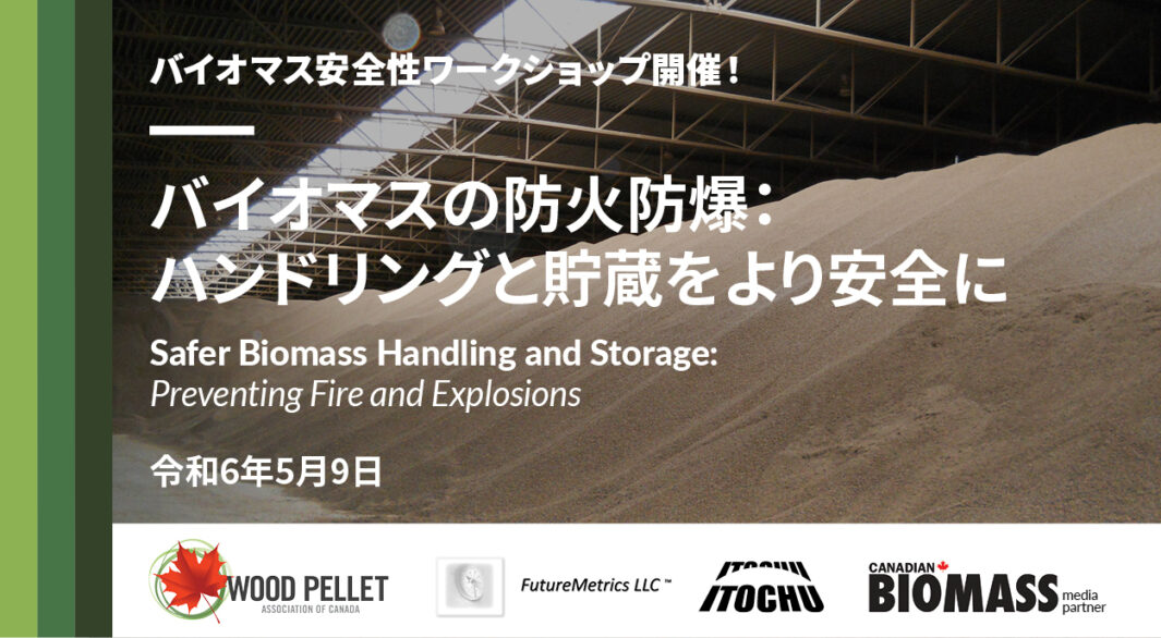 皆さまの反響にお応えして、カナダ木質ペレット協会とFutureMetrics社は、伊藤忠商事、メディアスポンサーであるCanadian Biomass誌と共に、バイオマスのハンドリングと貯蔵における火災のリスクと防止対応に対する日本バイオマス安全性ワークショップ第二弾を開催いたします。第一回ワークショップから内容も大きく拡充。バイオマスのハンドリングや各種貯蔵方式の新情報から、バイオマスのハンドリングと貯蔵におけるハザードの系統的評価の最新手法、ボウタイ分析入門もご期待ください。