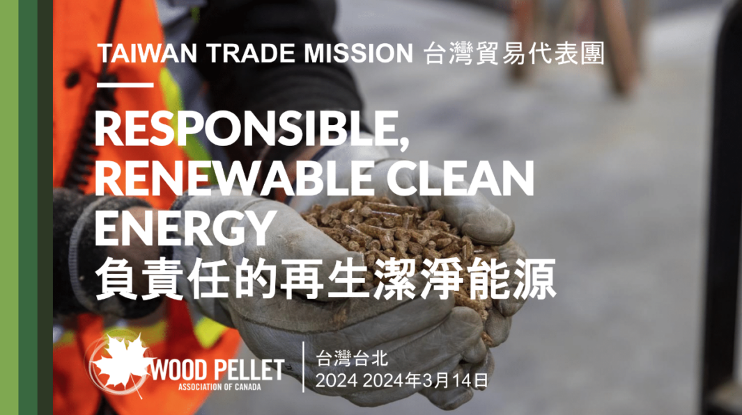 The Wood Pellet Association of Canada, together with the Canadian Trade Office in Taipei and the Taiwan Bio-energy Technology Development Association, is organizing a trade mission to Taiwan on March 11-15, 2024. The mission will include four days of visiting prospective customers and their facilities and a one-day conference on the potential Taiwan market.