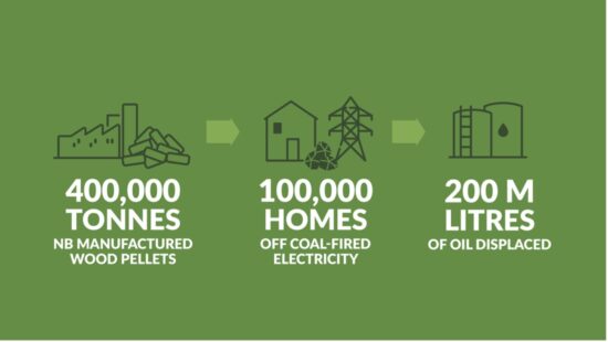 The fact is, if we took the 400,000 tonnes of local wood pellets manufactured yearly at the five wood pellet plants in New Brunswick and used the fuel here, we could take 100,000 homes off coal-fired electricity and displace 200 million litres of oil.