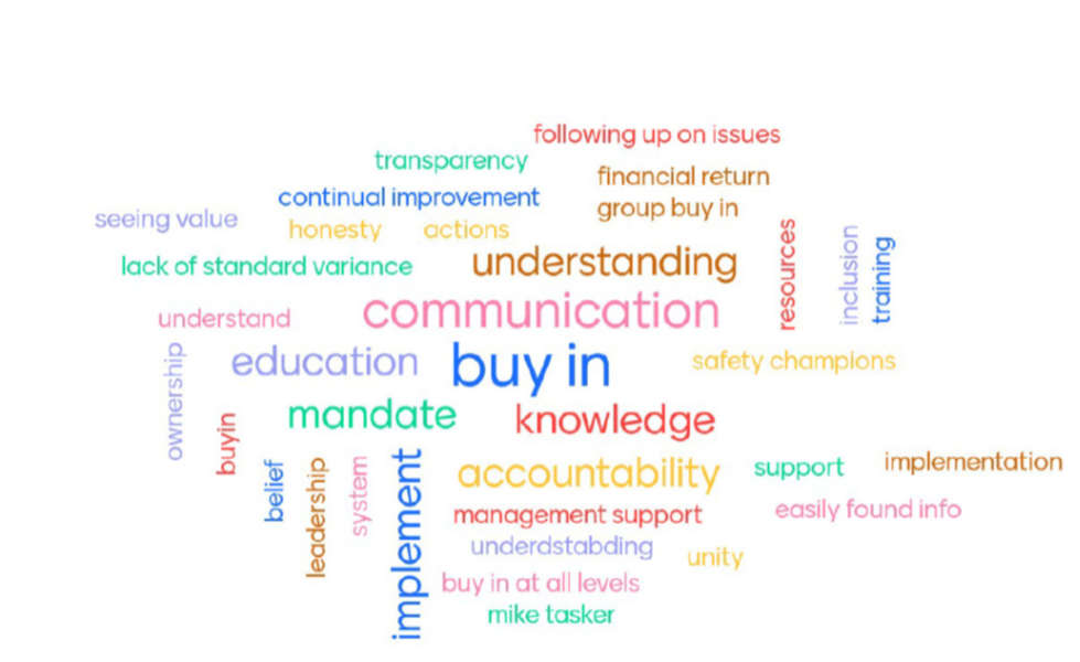 Participants used the live polling app to respond to the question What do you think is most important thing for process safety culture? It’s clear that buy-in at all levels and communication are key to the success of any safety initiative.